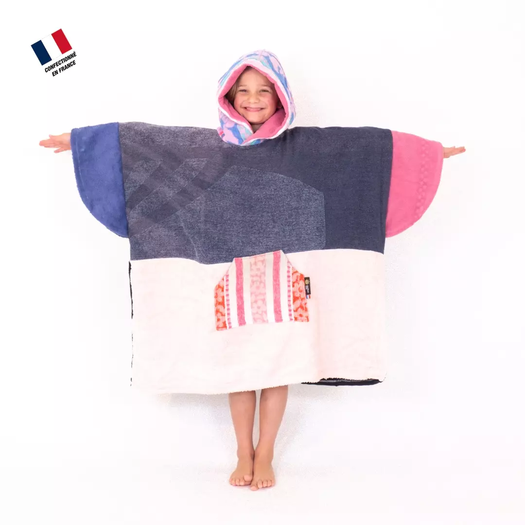 Poncho upcyclé junior Pinkblue Mellow Sea