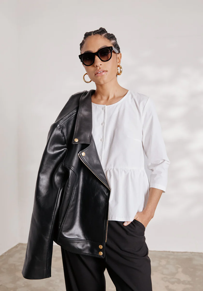 BOA, le Perfecto made in France aux découpes marquées et aux bijouteries dorées de choix. On aime tout chez lui, sa coupe droite, ses zips aux poignets et ses doubles pressions à la ceinture. Véritable pièce d’exception, confectionnée dans un atelier au savoir-faire unique.