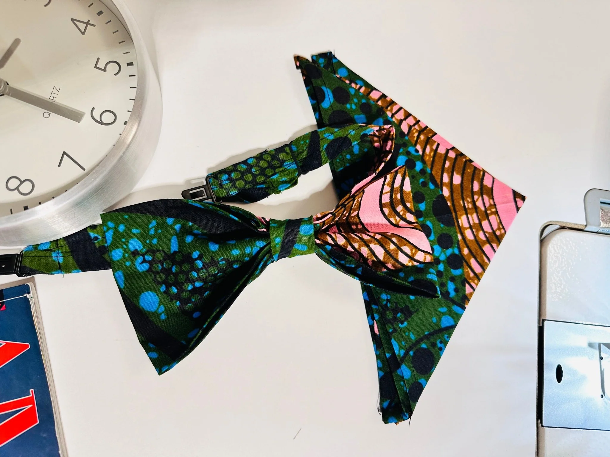 Voici la paire idéale un kit nœud papillon avec mouchoir pour homme et la ceinture pour femme le tout assorti en pagne Wax.