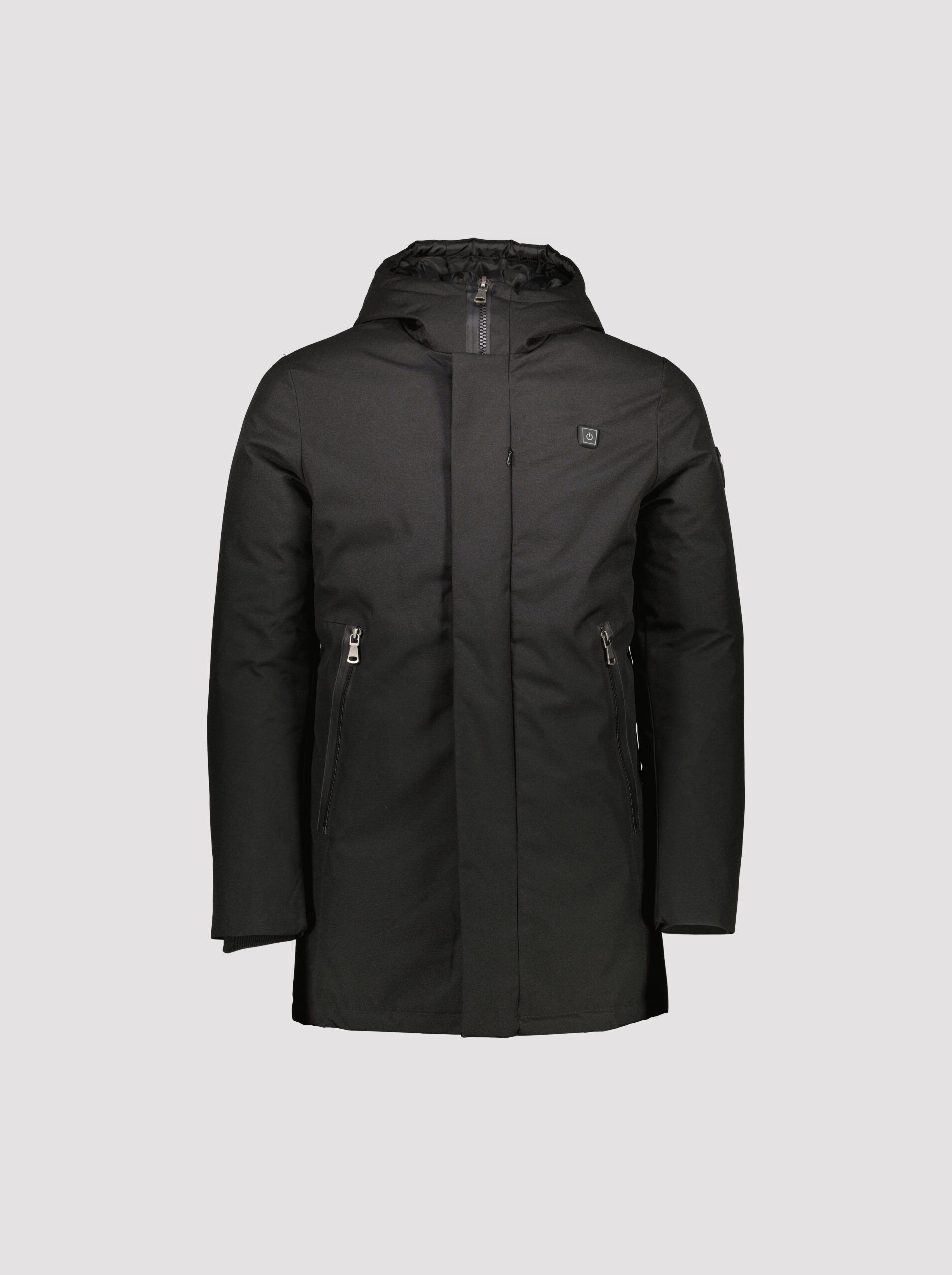 Les manches longues sont terminées par des poignets élastiqués qui optimisent la protection contre le froid et empêchent l’air de pénétrer. Les deux grandes poches latérales à bouton-pression offrent un espace de rangement pratique pour les mains ou les objets personnels. Une poche zippée discrète située sur la manche gauche apporte une touche fonctionnelle supplémentaire.