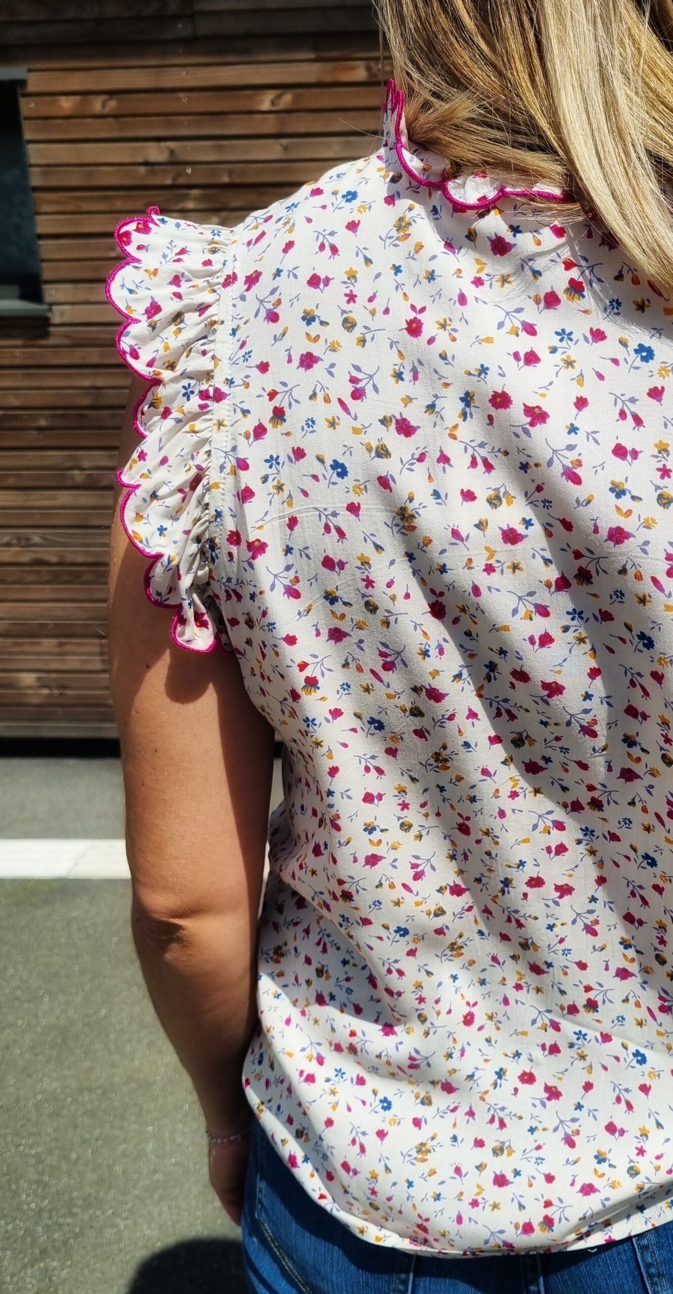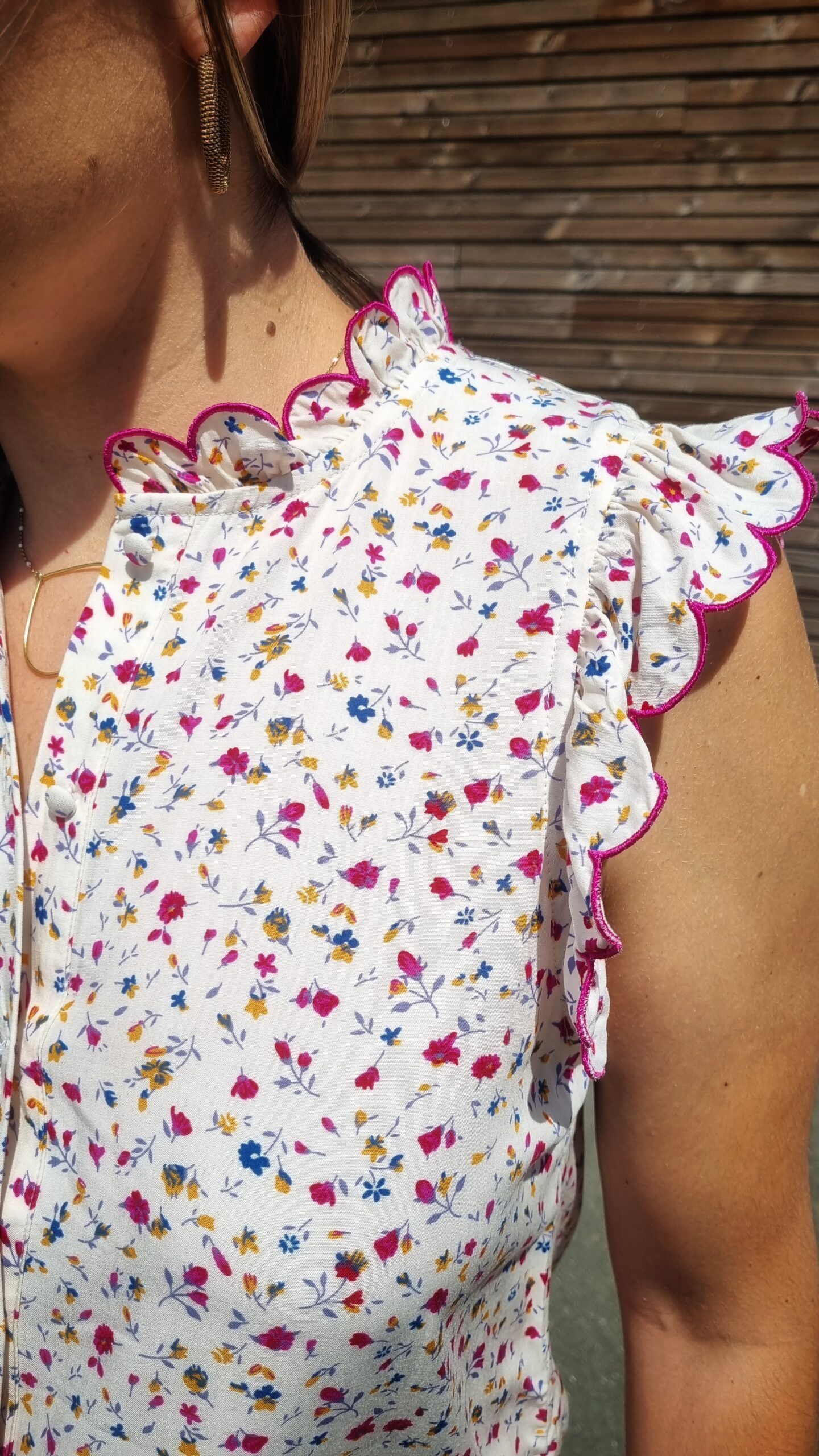 Imprimé fleuri (rose fuchsia, bleu, parme, jaune moutarde)