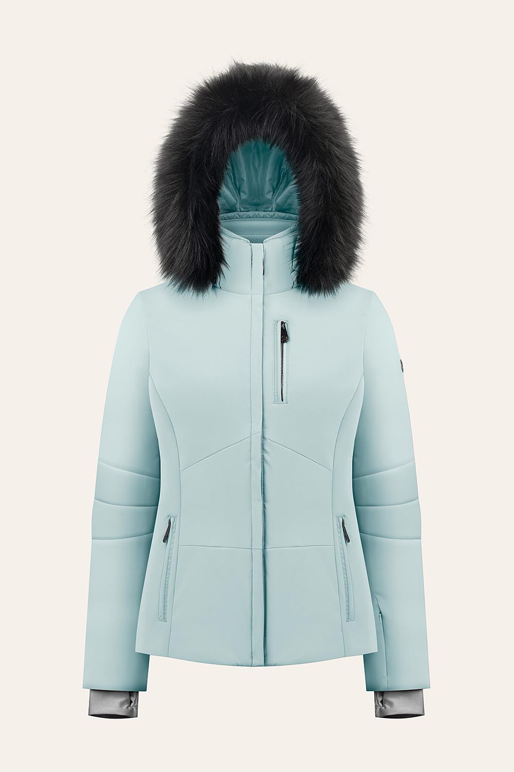 Elle est dotée d’une capuche amovible, d’une bande en fausse en fourrure et d’une jupe pare-neige.